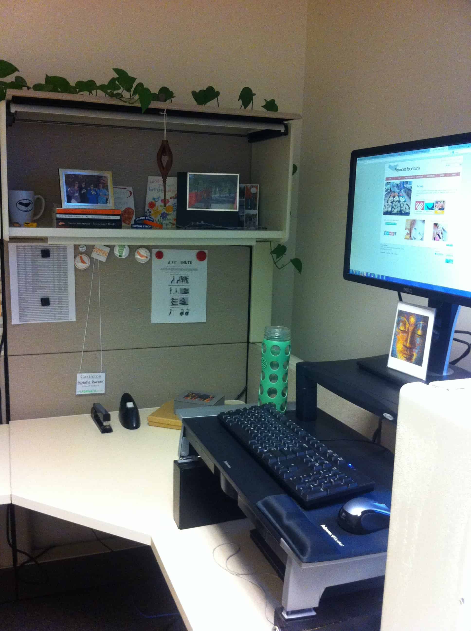 When I started working at my last job, the furniture in my office was set up for an entirely different type of department, so I was lucky enough to be able choose all of my own furniture. I’d already seen another colleague at his own makeshift standing desk and decided to give it a go.