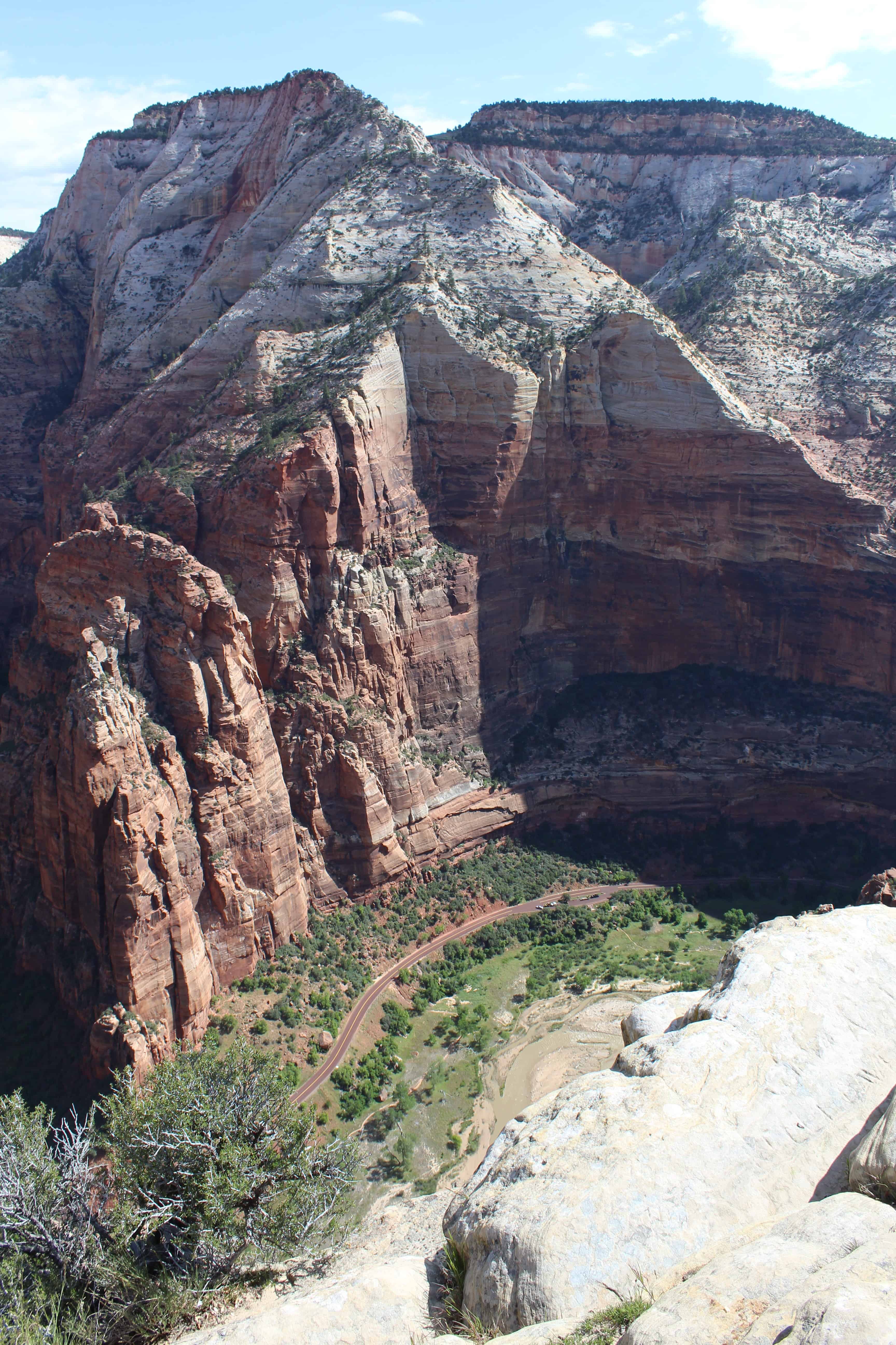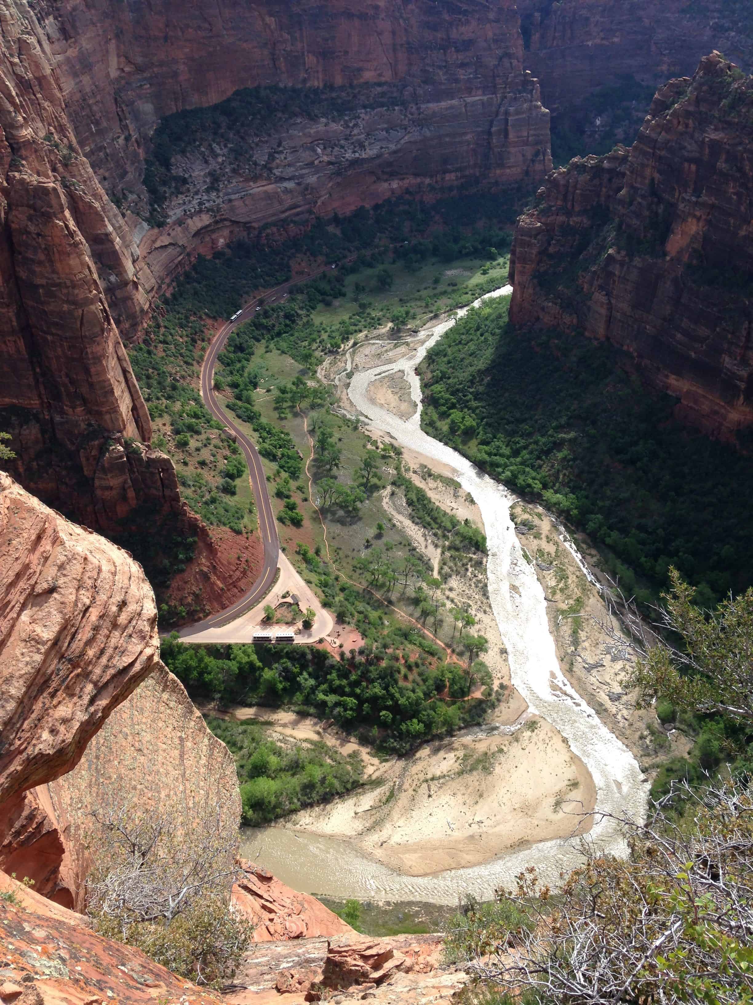 The one major hike I did within Zion satisfied me for most of my stay – and possibly took years off my life: Angel’s Landing Trail (4.8 miles, unpaved, dangerous). This hike starts off innocuous enough, eventually climbing up and up. Then “Walter’s Wiggles” carry you up, up, and more up. I’ve heard there are 21 wiggles – switchbacks, really – but I lost count. Once at the top of this section of trail, the most daunting section is still ahead of you. There’s a 0.5 mile climb along a rocky, narrow ridgeline of the mountain. It was the longest and strangest 0.5 miles of my life!